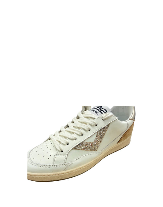 2B12 Sneaker bambina con lacci – Bianca con Dettagli Glitter e Suede