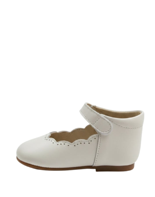 Panyno - Scarpa Primi Passi in Pelle Bianca con Bordi a Smerlo e Fibbia