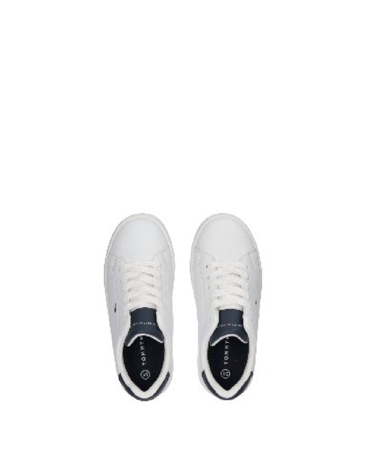 Tommy Hilfiger sneakers bambino Classic Bianche con Tallone Blu – Modello Essential con lacci