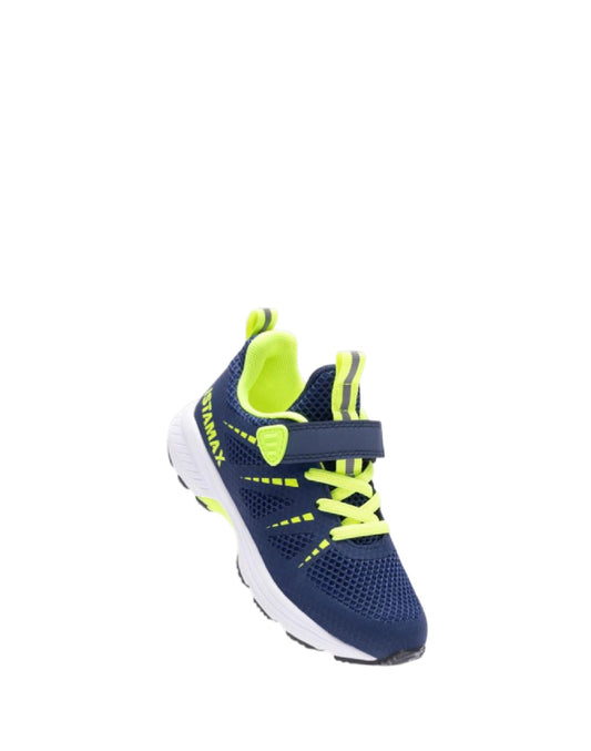 ISTAMAX-SCARPA RUNNING BAMBINO BLU/GIALLO FLUO CON LACCI ELASTICI E STRAPPO
