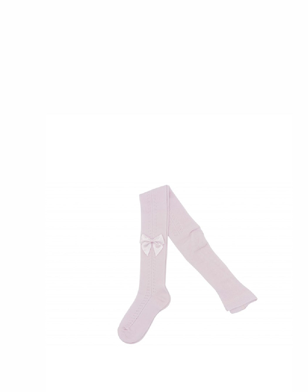 Collant Neonato In Tinta Unita Con Motivo Traforato ed elegante Fiocco In Raso Applicato. Il caldo cotone rende il collant perfetto per la stagione invernale.