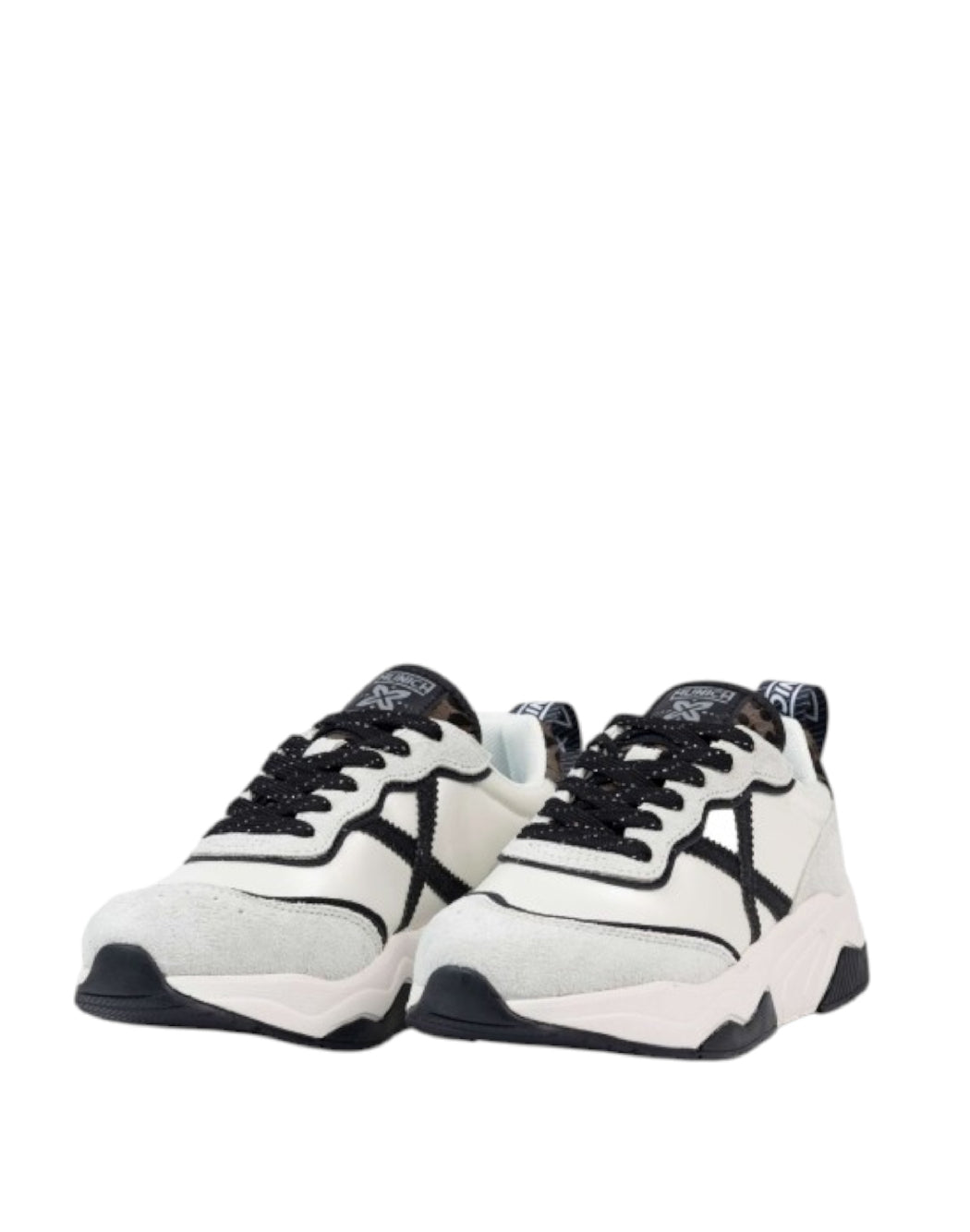 La Wave è la sneaker contemporanea con suola a maxi volume che evoca l'energia, il dinamismo e l'audacia del marchio nella sua versione più all'avanguardia. Il nuovo fenomeno nel mondo della moda. Dettaglio laterale in vernice nero e retro e linguetta stile maculato. Chiusura con lacci. Tomaia bianco perlato e puntale in crosta.