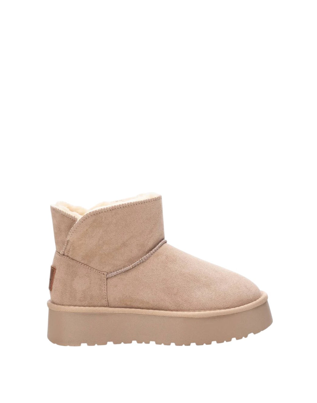 Stivale da donna del marchio Xti. Realizzato in morbida pelle scamosciata beige con fodera in pelle, ideale per il freddo. Indossa questo modello a casa o in strada. Doppio fondo con suola antiscivolo. Questo modello è stato certificato vegano dall'organizzazione globale PETA (Animal Rights Organization).