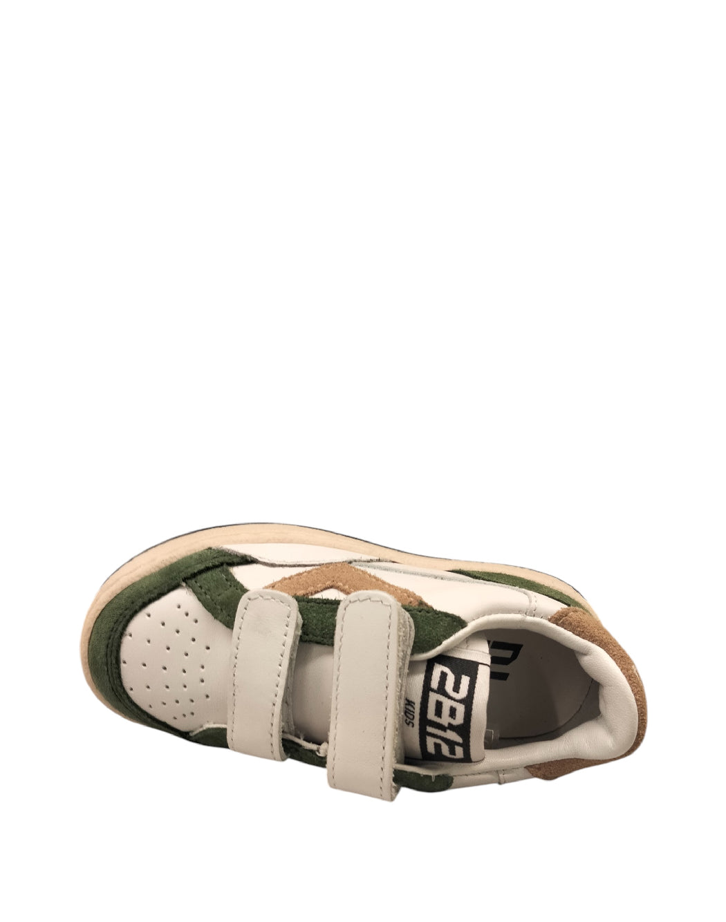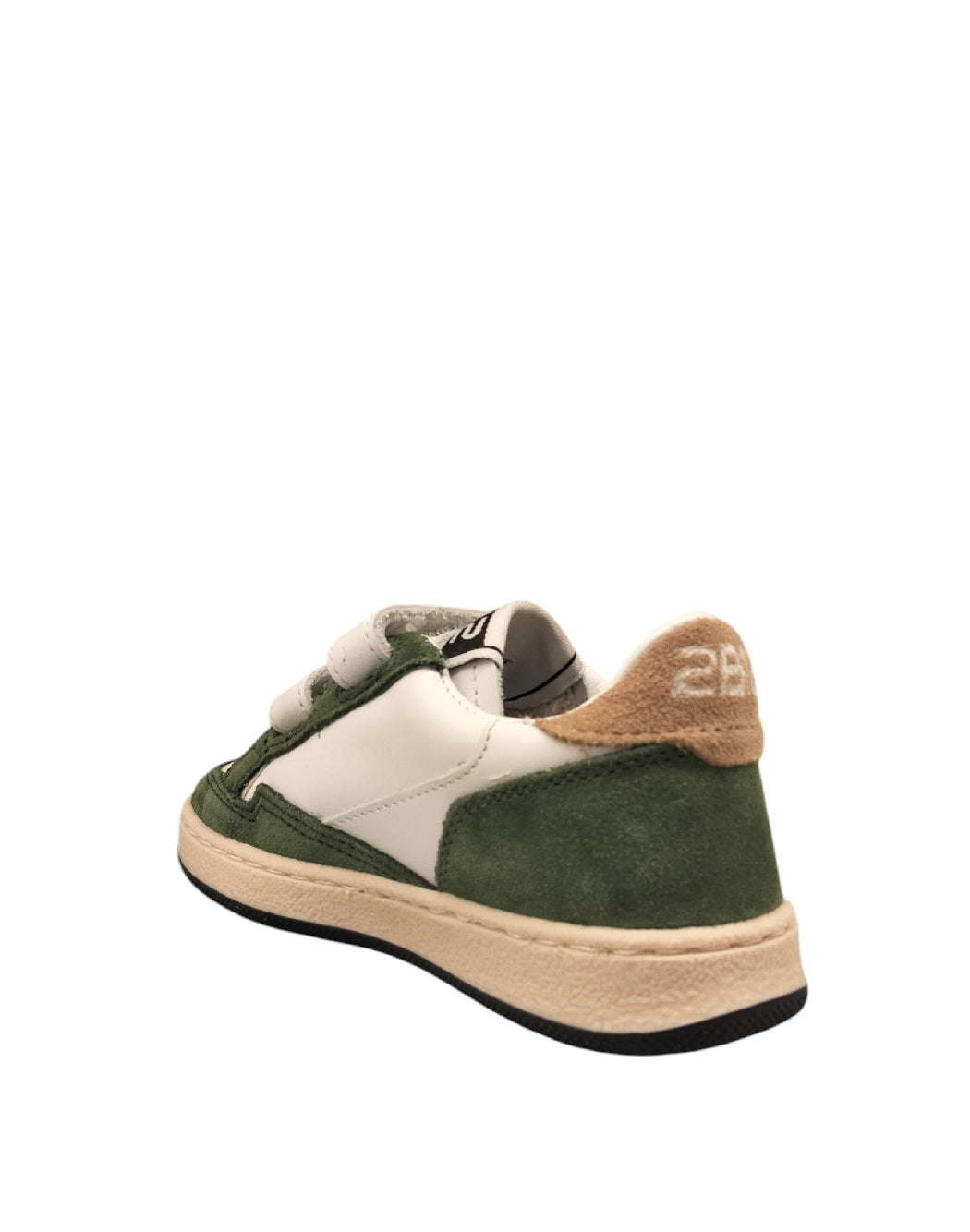 Realizzate con maestria artigianale e materiali di alta qualità, le sneakers 2B12 made in Italy sono sinonimo di stile e comfort. Perfette per un look vivace e pratico. La suola in gomma offre un'ottima aderenza, garantendo sicurezza e stabilità durante i movimenti. Chiusura con doppio velcro. Tomaia bianca in pelle con dettagli in crosta verde e beige sul puntale, sul lato e sul retro della calzatura.