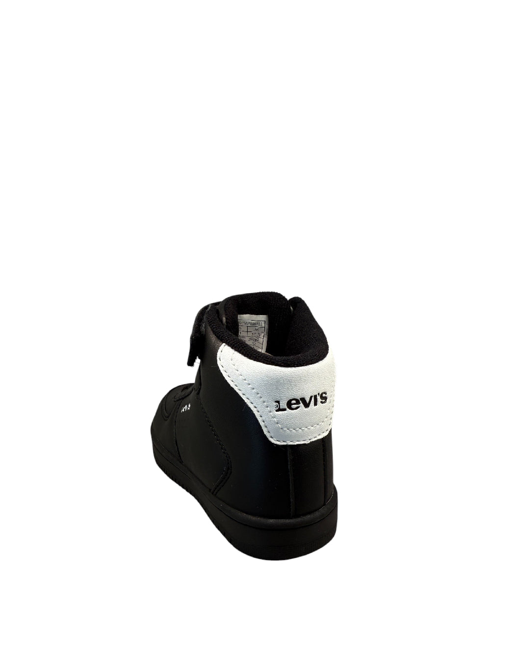 Sneakers alte Levi's New Union Mid colore nero in similpelle con suola in gomma, dettagli traforati, lacci in elastico tono su tono, velcro superiore e logo e retro a contrasto.