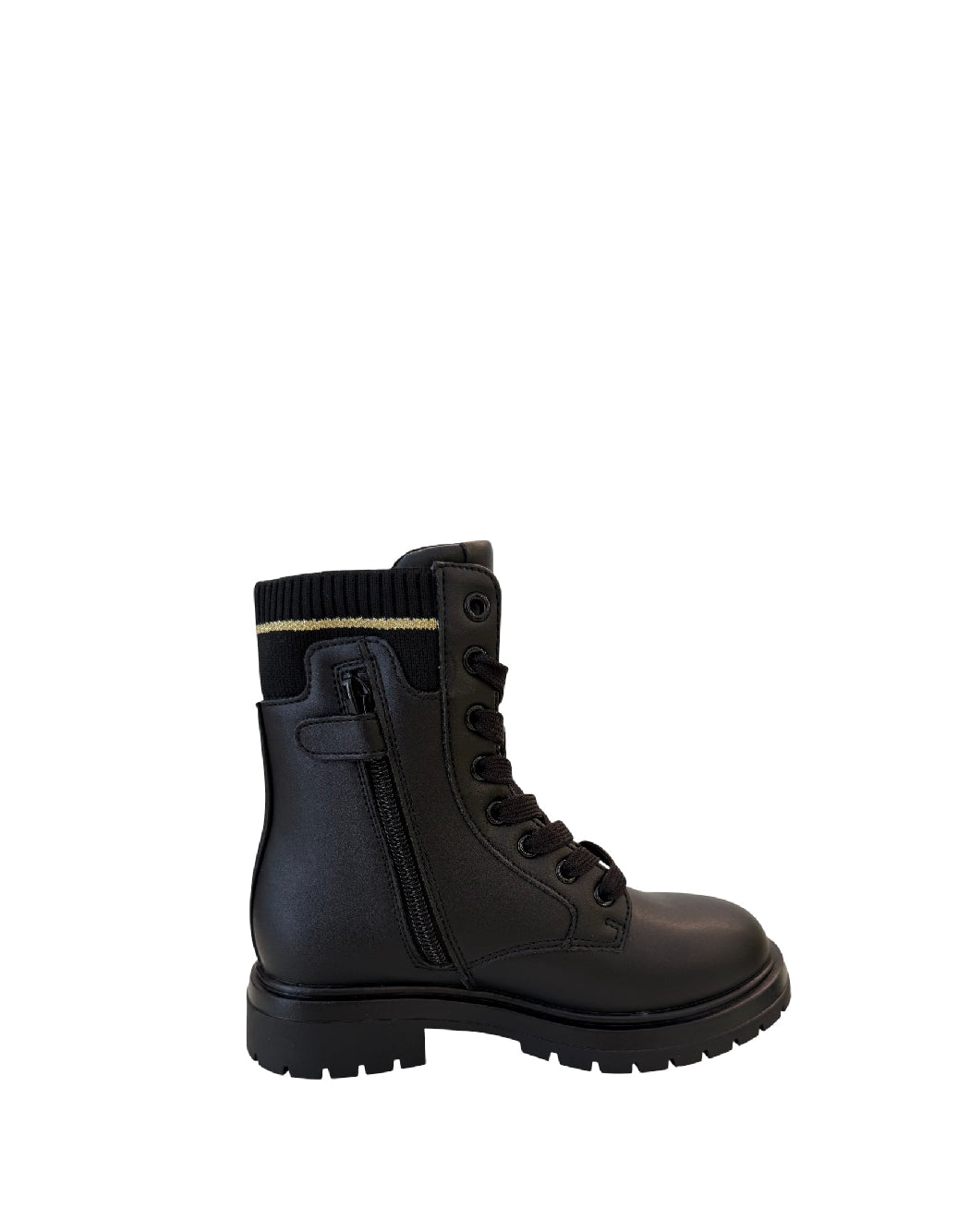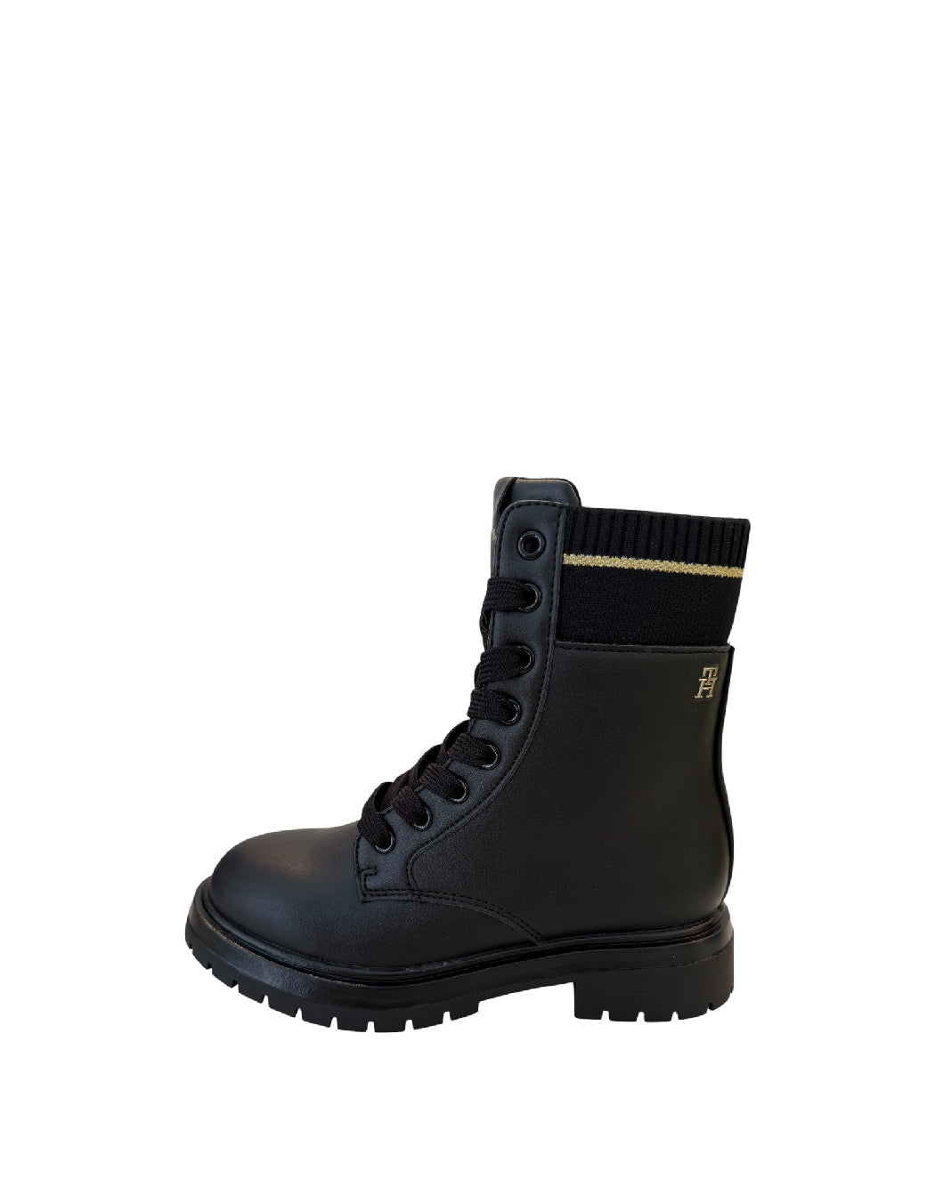 Gli scarponcini sono rifiniti dal bordo superiore in maglia per un comodo effetto calzino, mentre la placchetta con monogramma TH aggiunge un tocco di lucentezza che non passa inosservato.