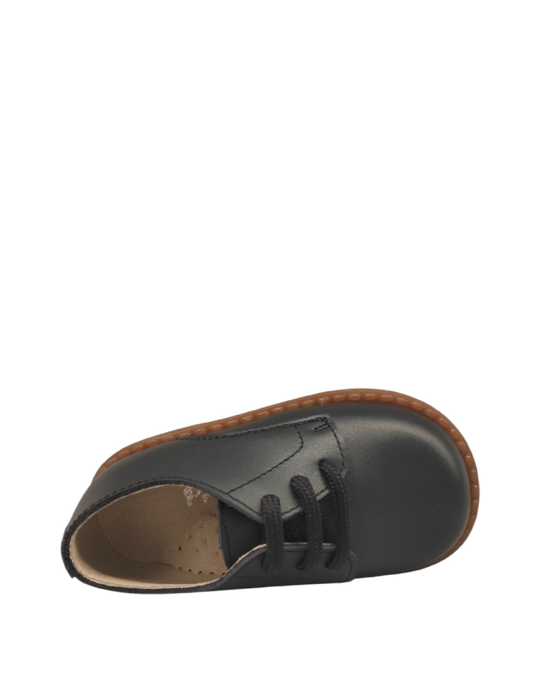 Scarpa in pelle blu, modello cerimoniale. Chiusura con lacci.